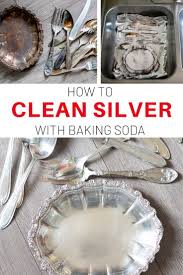 Housecleaning tips tricks. To clean silver with baking soda start by washing the silver with mild dish soap and water to remove any residue. One tablespoon baking soda. Next boil enough water to fill the sink and add 1 4 cup of baking soda for every 4 cups of water you use. To clean silver with baking soda line a baking pan with tin foil pla.