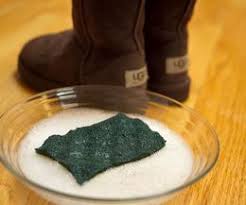 Rinse and blot dry. Use a bucket or your kitchen sink and fill either with about a gallon of warm water. Blot tread clean water in to the area. The cleaner is expensive and i am just looking for a easy solution to get it out without ruining the boot. As if rain and snow weren t messy enough the salt from streets and sidewalks can leave an unwanted white hue on suede and sheepskin shoes.